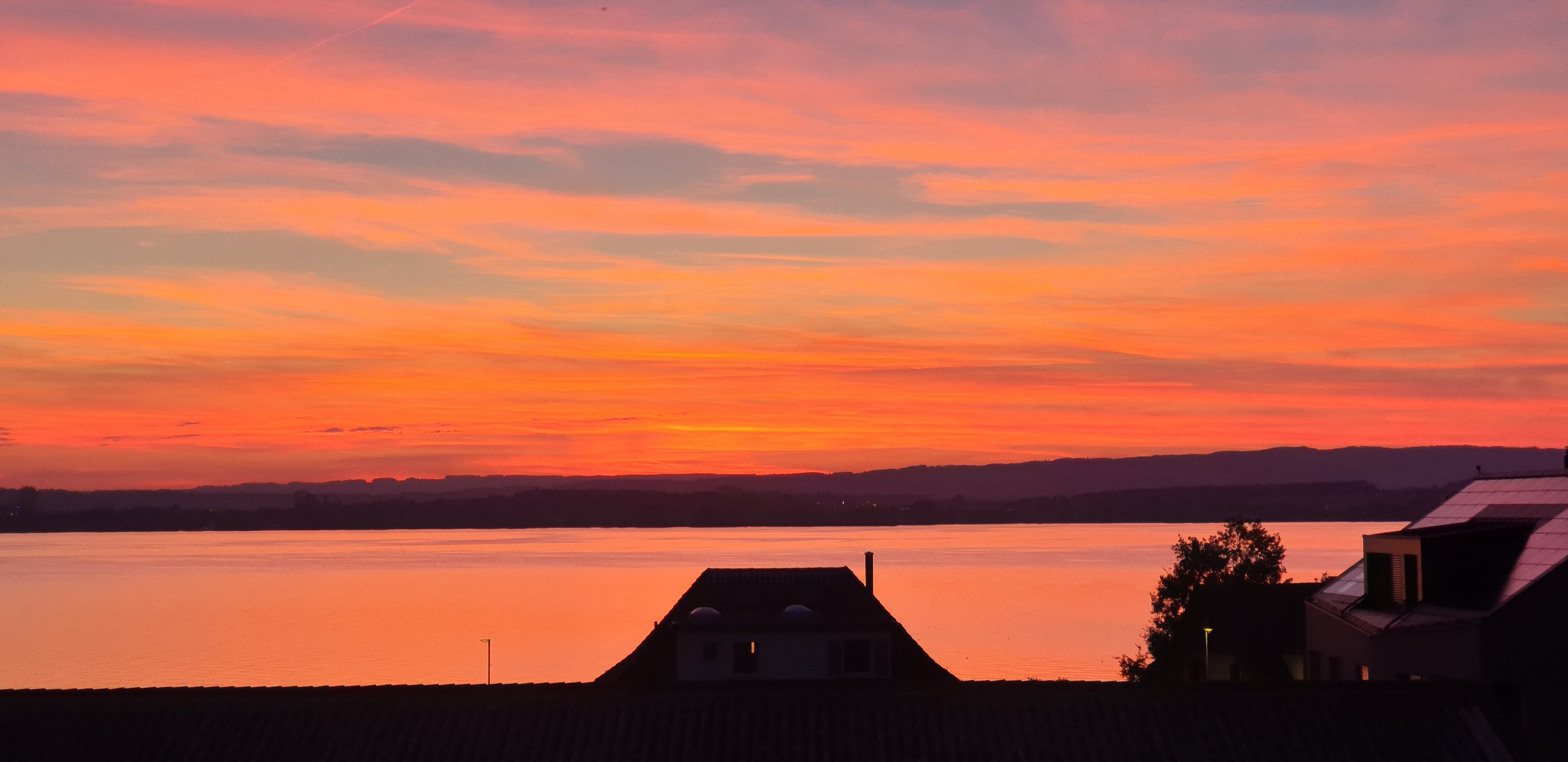 Egal zu welcher Jahreszeit, das Tagesende wird in den wunderbarsten Nuancen präsentiert. Im Frühling sind die Färbungen kühl und in Blautönen. Im Herbst hingegen brennt der Himmel in den manigfaltigsten Rottönen. Einfach nur Wouw 🤩😍. Jeden Abend stehe ich auf dem Balkon und knipse wie verrückt ein Bild nach dem anderen. Jedes mit der Überzeugung – so schön war es noch nie.